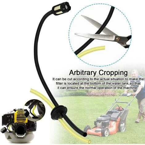 Tuyau de carburant universel:ce type de tuyau de tondeuse à gazon est fabriqué en latex de haute qualité, qui a la caractéristique d’être flexible, durable et anti-corrosion. Cet ensemble de tuyaux se compose de deux tuyaux, noir et jaune. La longueur totale du tuyau est de 24 cm et la taille du petit tuyau est de 15 cm.